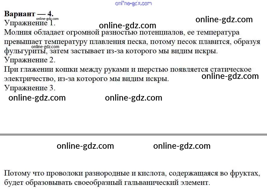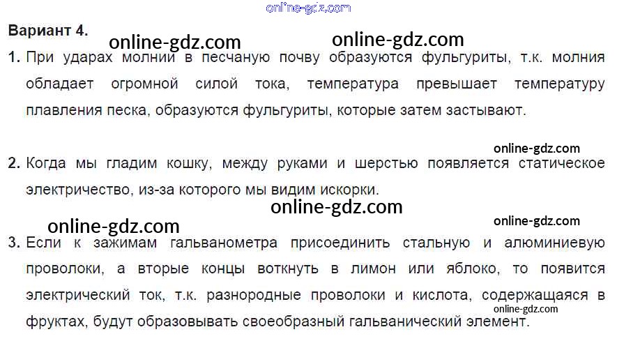 Готовые домашние задания по Физике за 8 класс Дидактические материалы Марон Вертикаль 2016 - СР №7. Электрический ток. Варианты Самостоятельные работы 4