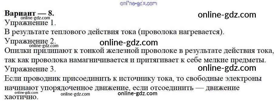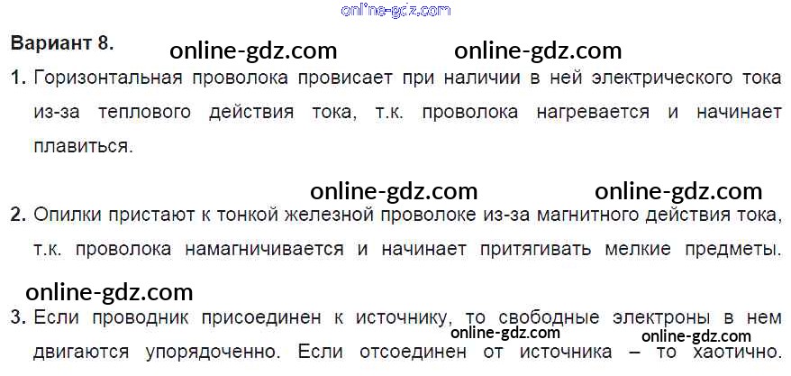 Готовые домашние задания по Физике за 8 класс Дидактические материалы Марон Вертикаль 2016 - СР №7. Электрический ток. Варианты Самостоятельные работы 8