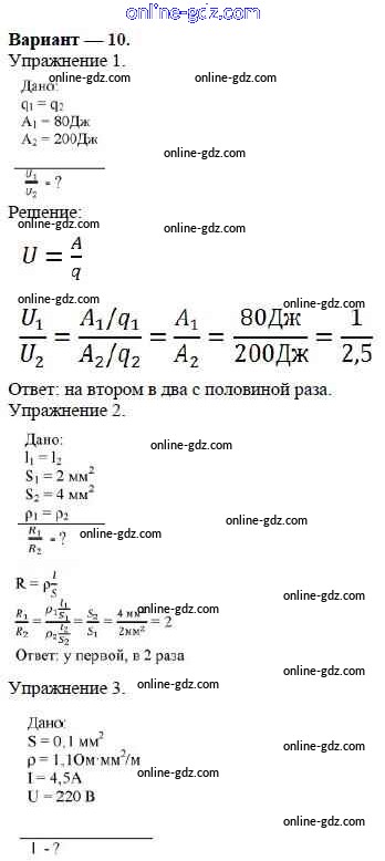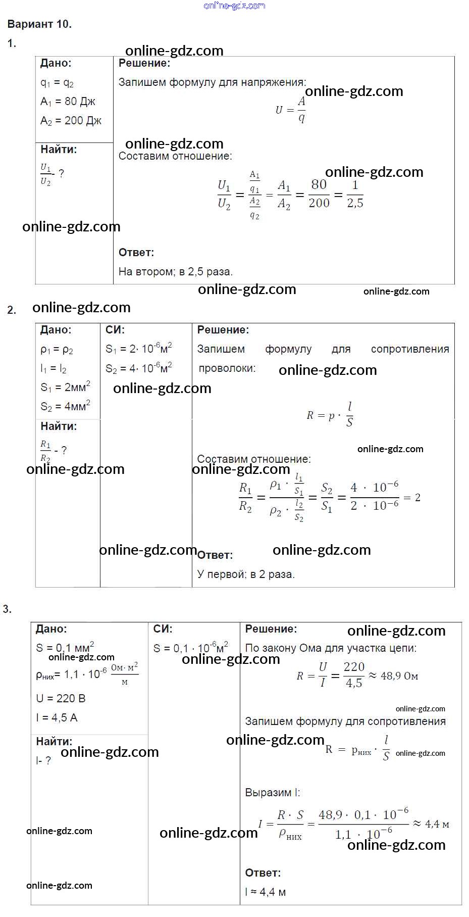 Готовые домашние задания по Физике за 8 класс Дидактические материалы Марон Вертикаль 2016 - СР №8. Сила тока. Напряжение. Закон Ома для участка цепи Варианты Самостоятельные работы 10