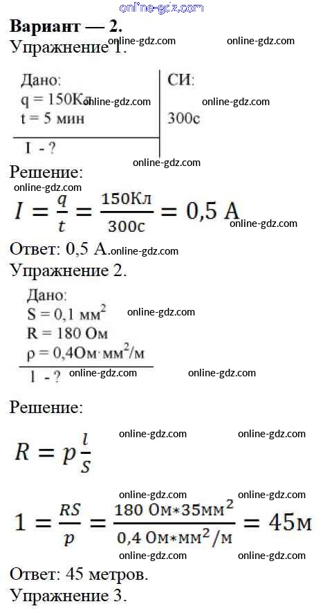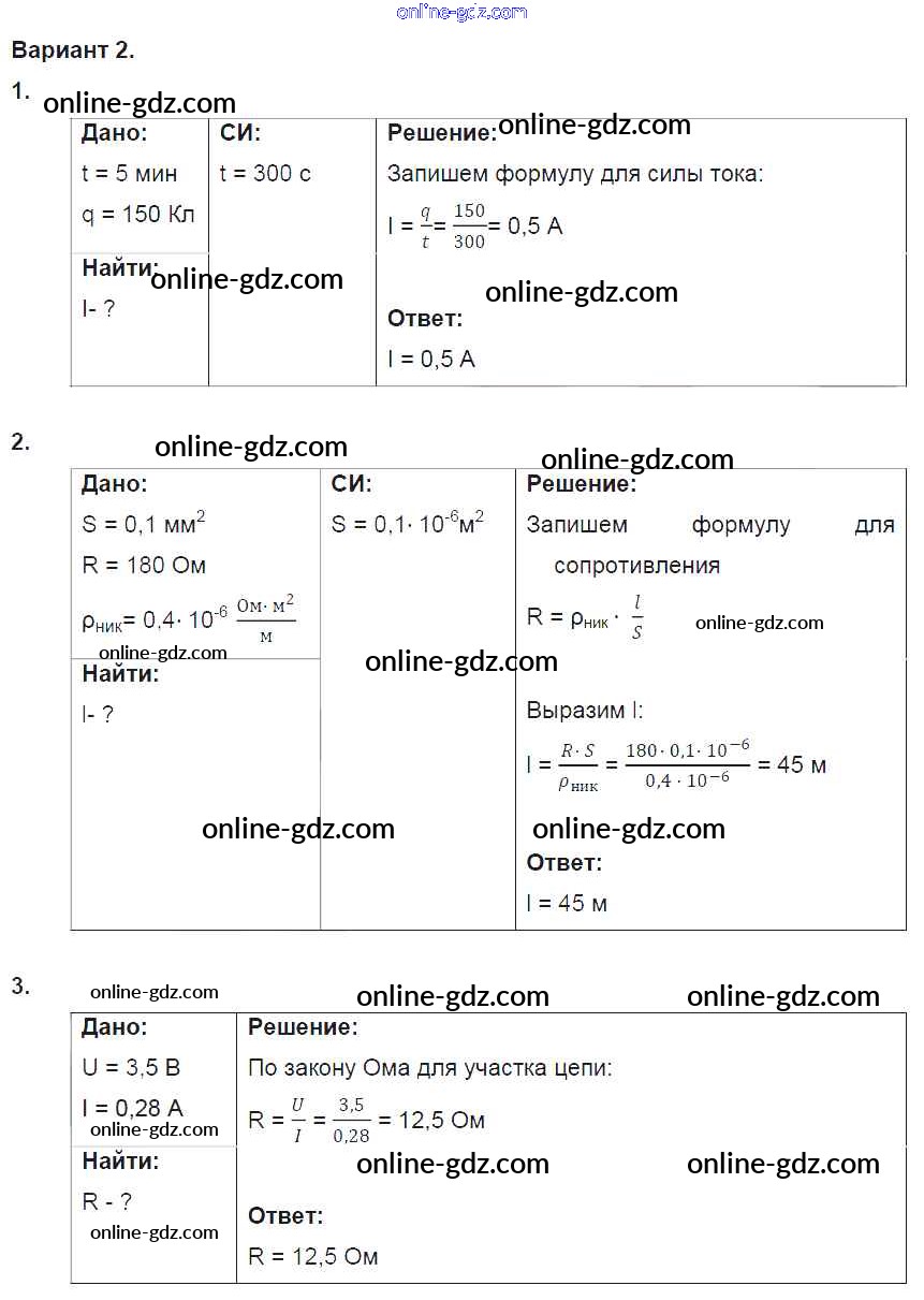 Готовые домашние задания по Физике за 8 класс Дидактические материалы Марон Вертикаль 2016 - СР №8. Сила тока. Напряжение. Закон Ома для участка цепи Варианты Самостоятельные работы 2