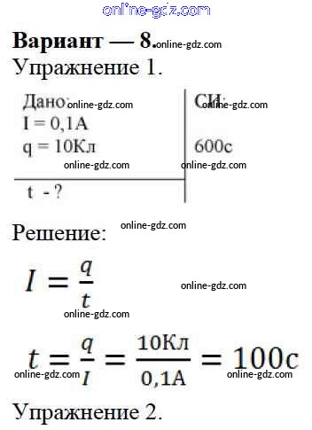 Готовые домашние задания по Физике за 8 класс Дидактические материалы Марон Вертикаль 2016 - СР №8. Сила тока. Напряжение. Закон Ома для участка цепи Варианты Самостоятельные работы 8