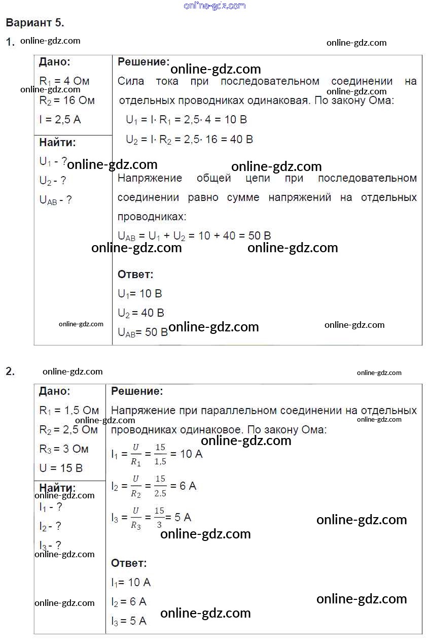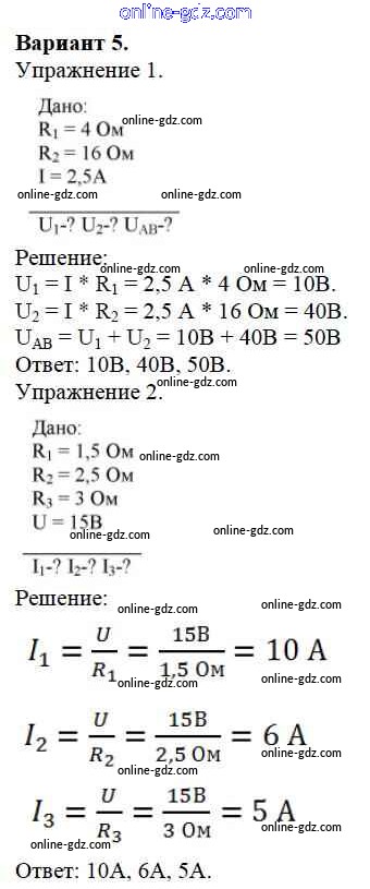 Готовые домашние задания по Физике за 8 класс Дидактические материалы Марон Вертикаль 2016 - СР №9. Соединение проводников. Варианты Самостоятельные работы 5