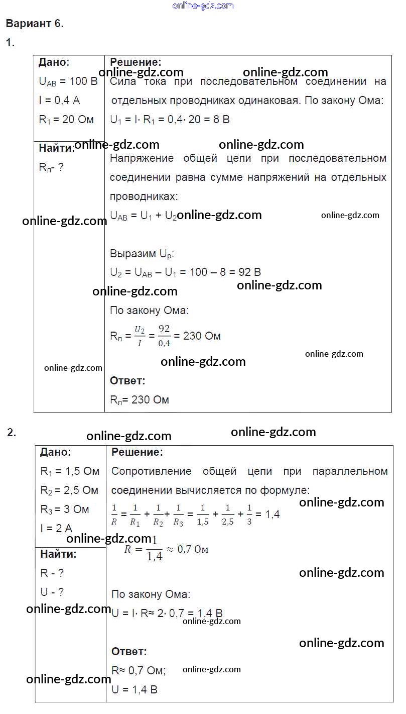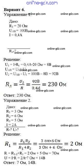 Готовые домашние задания по Физике за 8 класс Дидактические материалы Марон Вертикаль 2016 - СР №9. Соединение проводников. Варианты Самостоятельные работы 6