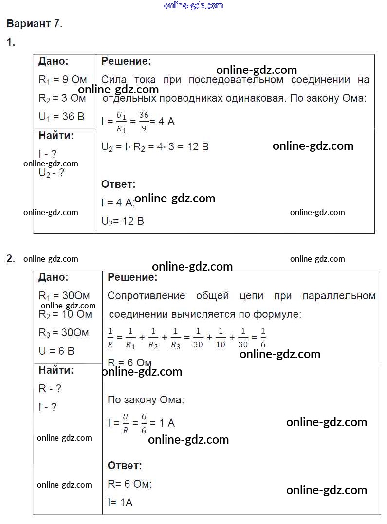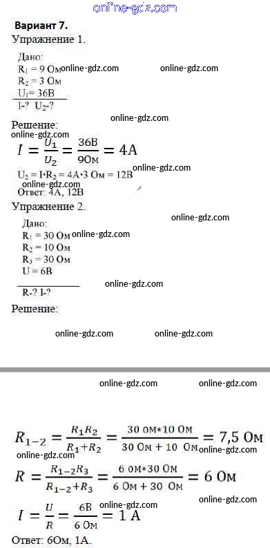 Готовые домашние задания по Физике за 8 класс Дидактические материалы Марон Вертикаль 2016 - СР №9. Соединение проводников. Варианты Самостоятельные работы 7