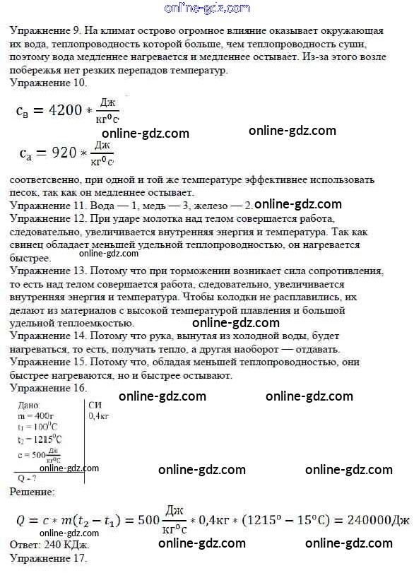 Готовые домашние задания по Физике за 8 класс Дидактические материалы Марон Вертикаль 2016 - Тренировочные задания 3. Количество теплоты