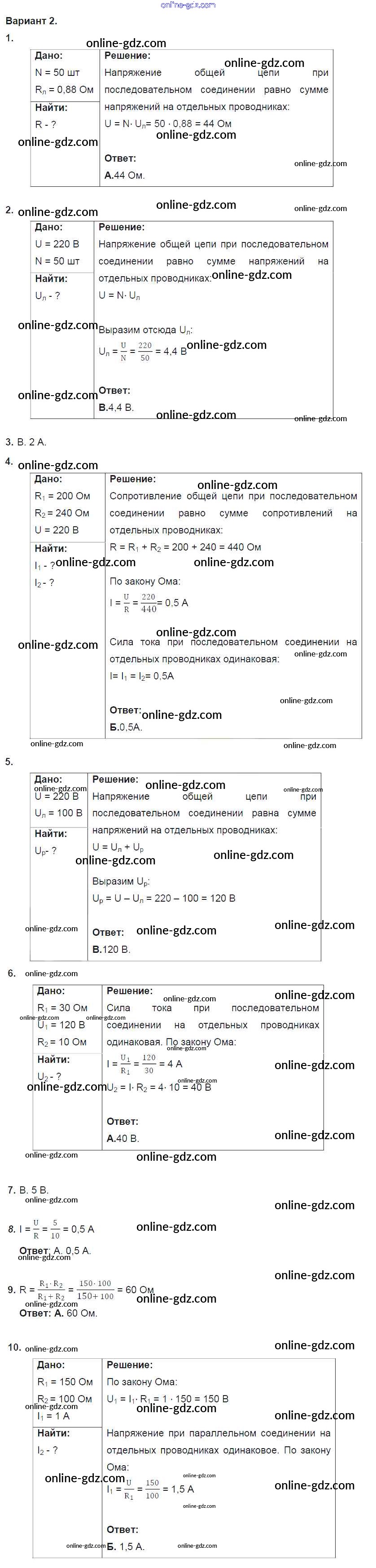 Готовые домашние задания по Физике за 8 класс Дидактические материалы Марон Вертикаль 2016 - Тест №7. Соединение проводников. Варианты Тесты для самоконтроля 2