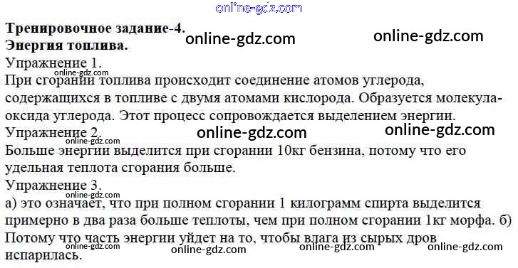 Готовые домашние задания по Физике за 8 класс Дидактические материалы Марон Вертикаль 2016 - Тренировочные задания 4. Энергия топлива
