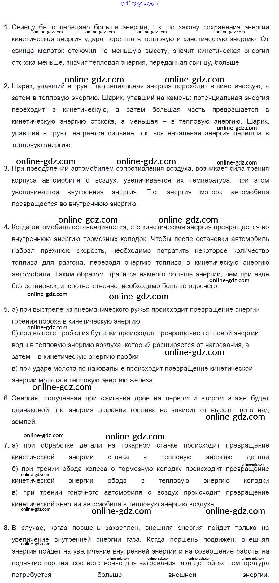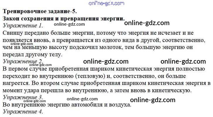 Готовые домашние задания по Физике за 8 класс Дидактические материалы Марон Вертикаль 2016 - Тренировочные задания 5. Закон сохранения и превращения энергии