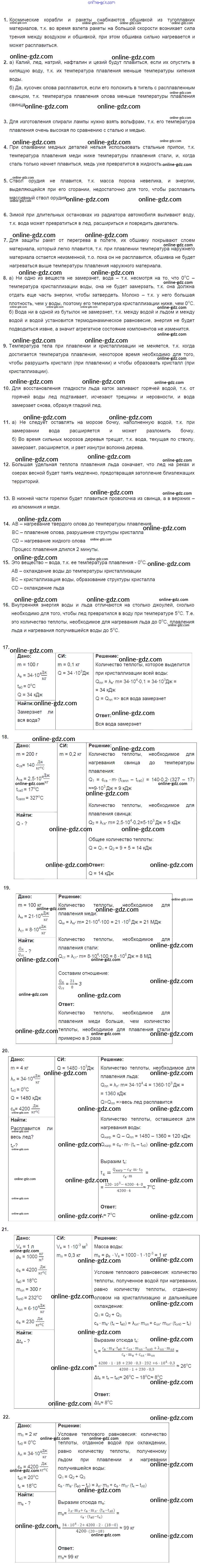 Готовые домашние задания по Физике за 8 класс Дидактические материалы Марон Вертикаль 2016 - Тренировочные задания 6. Плавление и отвердевание
