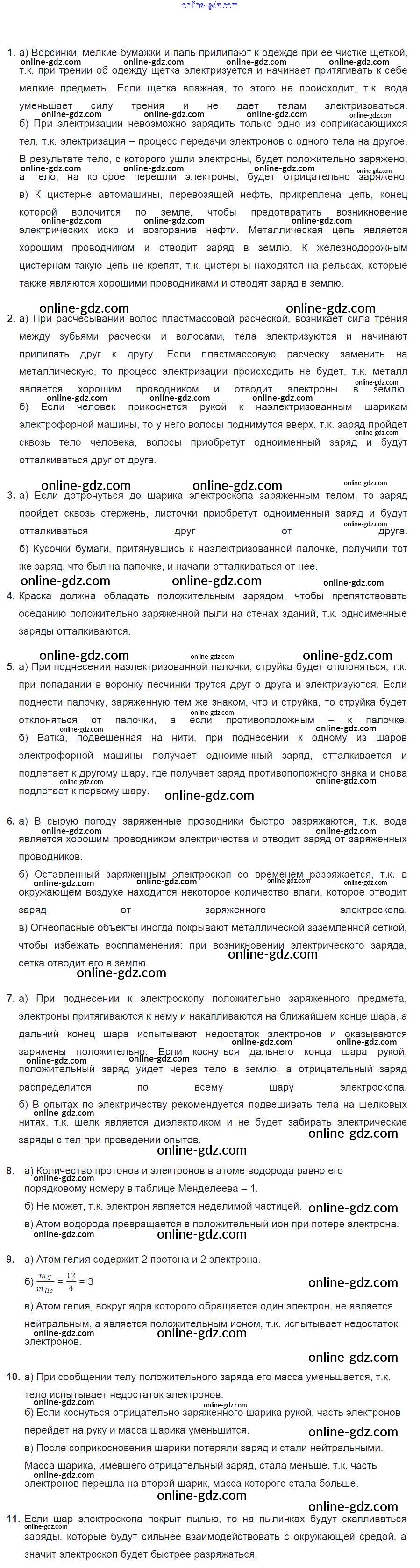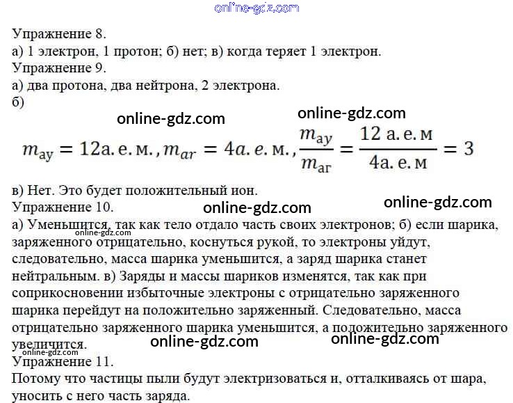 Готовые домашние задания по Физике за 8 класс Дидактические материалы Марон Вертикаль 2016 - Тренировочные задания 8. Электризация тел. Электрическое поле. Строение атомов