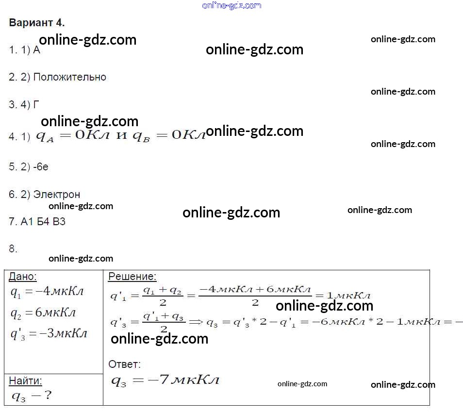 Готовые домашние задания по Физике за 8 класс Контрольные и самостоятельные работы Громцева УМК 2017 - 2.1. Постоянный ток Глава 2 вариант-4