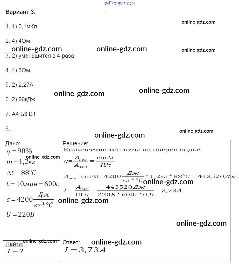 Готовые домашние задания по Физике за 8 класс Контрольные и самостоятельные работы Громцева УМК 2017 - 2.2. Электрические явления Глава 2 вариант-3