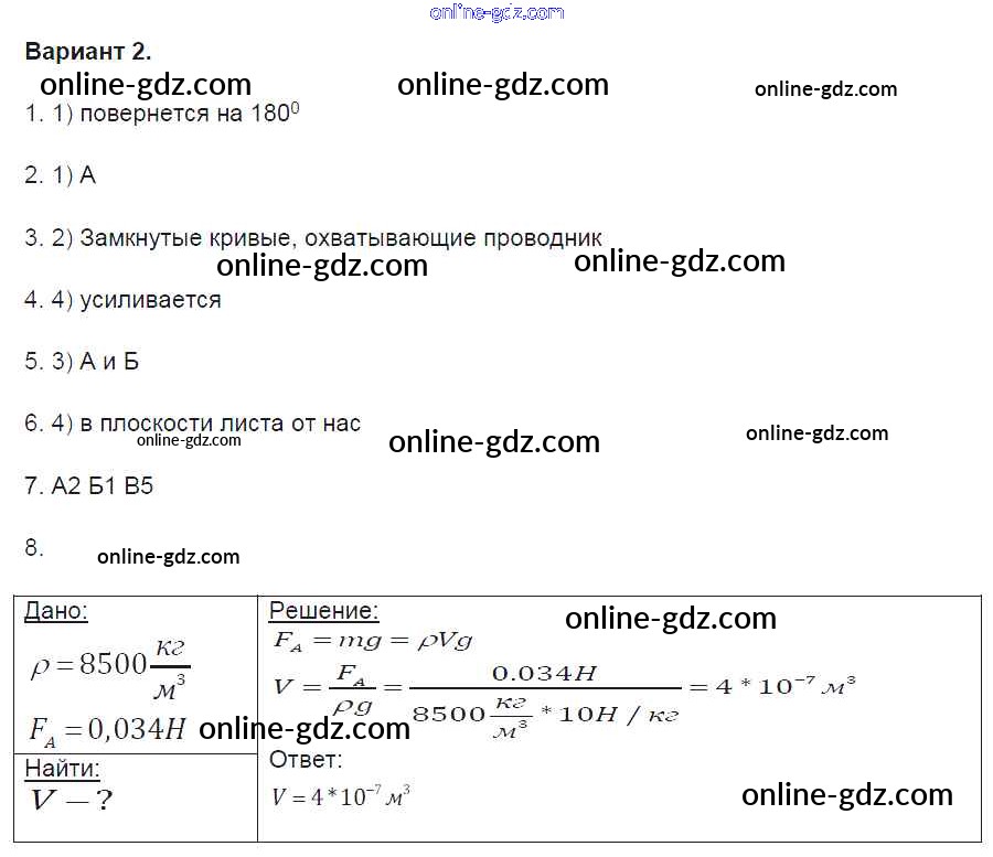 Готовые домашние задания по Физике за 8 класс Контрольные и самостоятельные работы Громцева УМК 2017 - Глава 3. Электромагнитные явления Контрольные работы вариант-2
