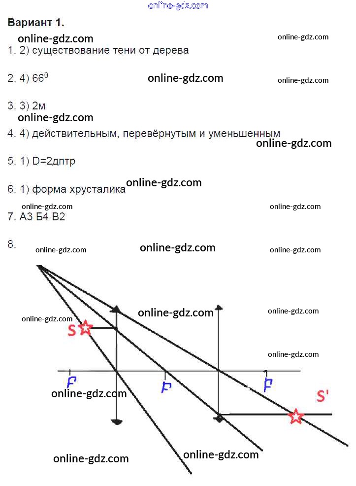 Готовые домашние задания по Физике за 8 класс Контрольные и самостоятельные работы Громцева УМК 2017 - Глава 4. Световые явления Контрольные работы вариант-1