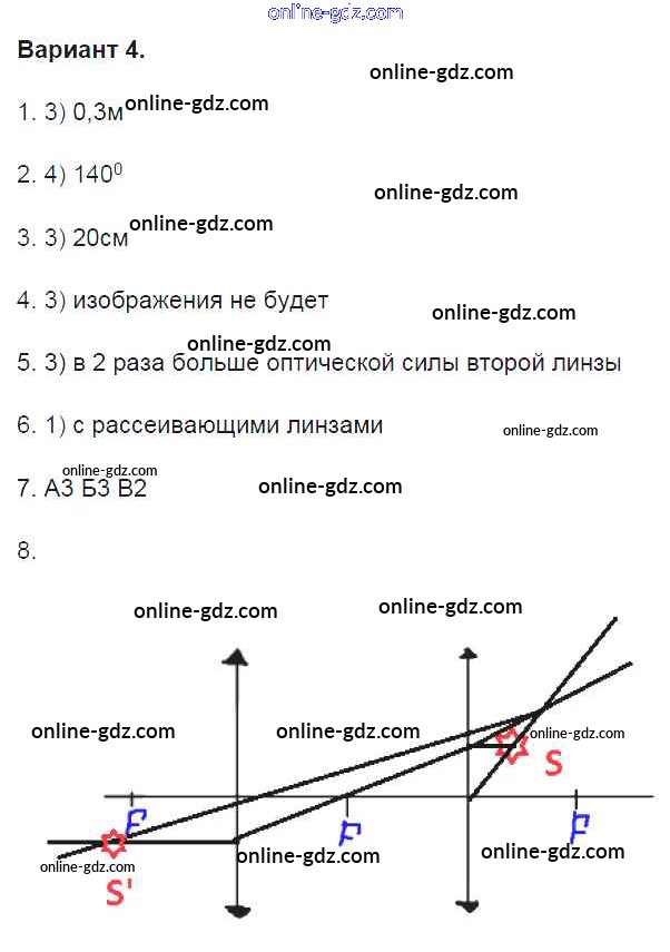 Готовые домашние задания по Физике за 8 класс Контрольные и самостоятельные работы Громцева УМК 2017 - Глава 4. Световые явления Контрольные работы вариант-4