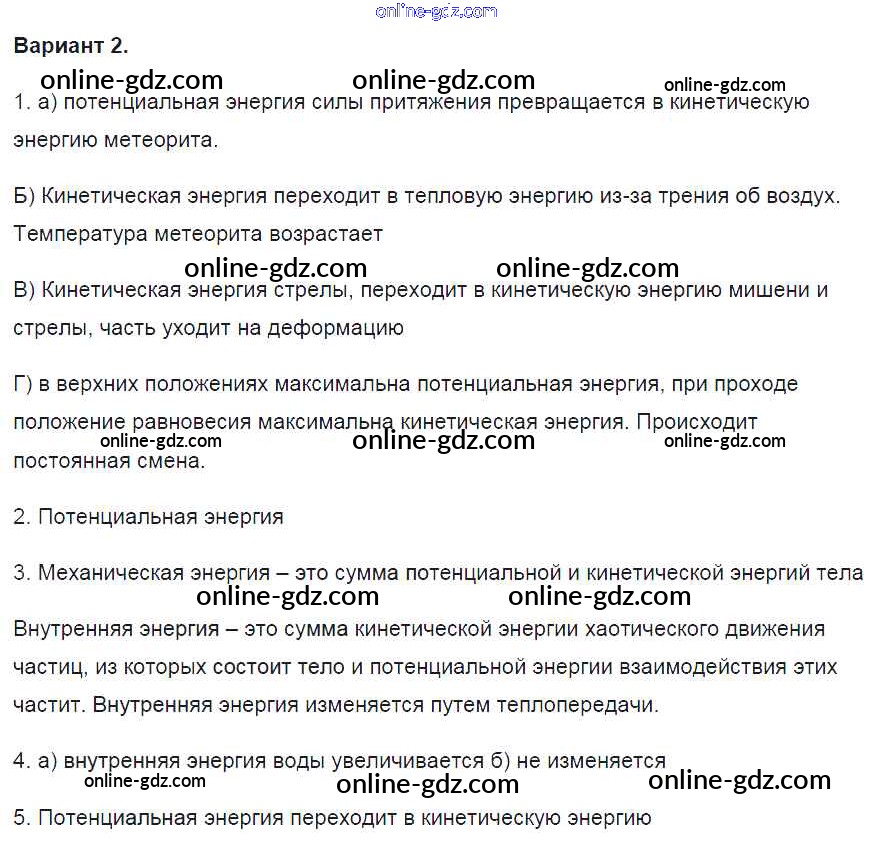 Готовые домашние задания по Физике за 8 класс Контрольные и самостоятельные работы Громцева УМК 2017 - СР №1. Тепловое движение. Температура. Внутренняя энергия Самостоятельные работы вариант-2