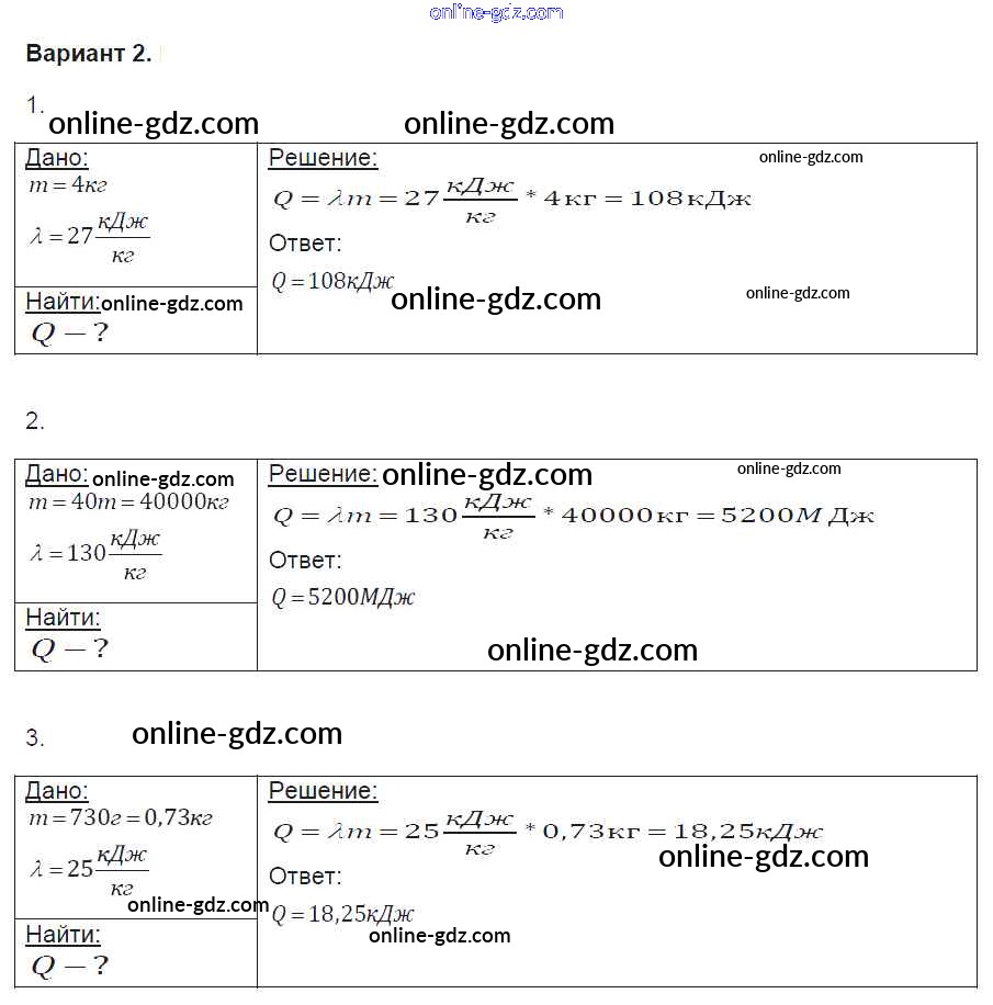 Готовые домашние задания по Физике за 8 класс Контрольные и самостоятельные работы Громцева УМК 2017 - СР №12. Удельная теплота плавления Самостоятельные работы вариант-2