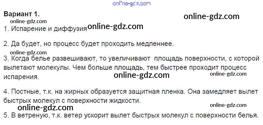 Готовые домашние задания по Физике за 8 класс Контрольные и самостоятельные работы Громцева УМК 2017 - СР №13. Испарение. Насыщенный и ненасыщенный пар Самостоятельные работы вариант-1