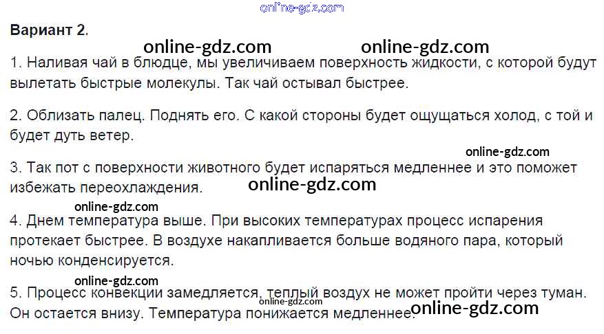 Готовые домашние задания по Физике за 8 класс Контрольные и самостоятельные работы Громцева УМК 2017 - СР №14. Поглощение энергии при испарении жидкости и выделение ее при конденсации пара Самостоятельные работы вариант-2