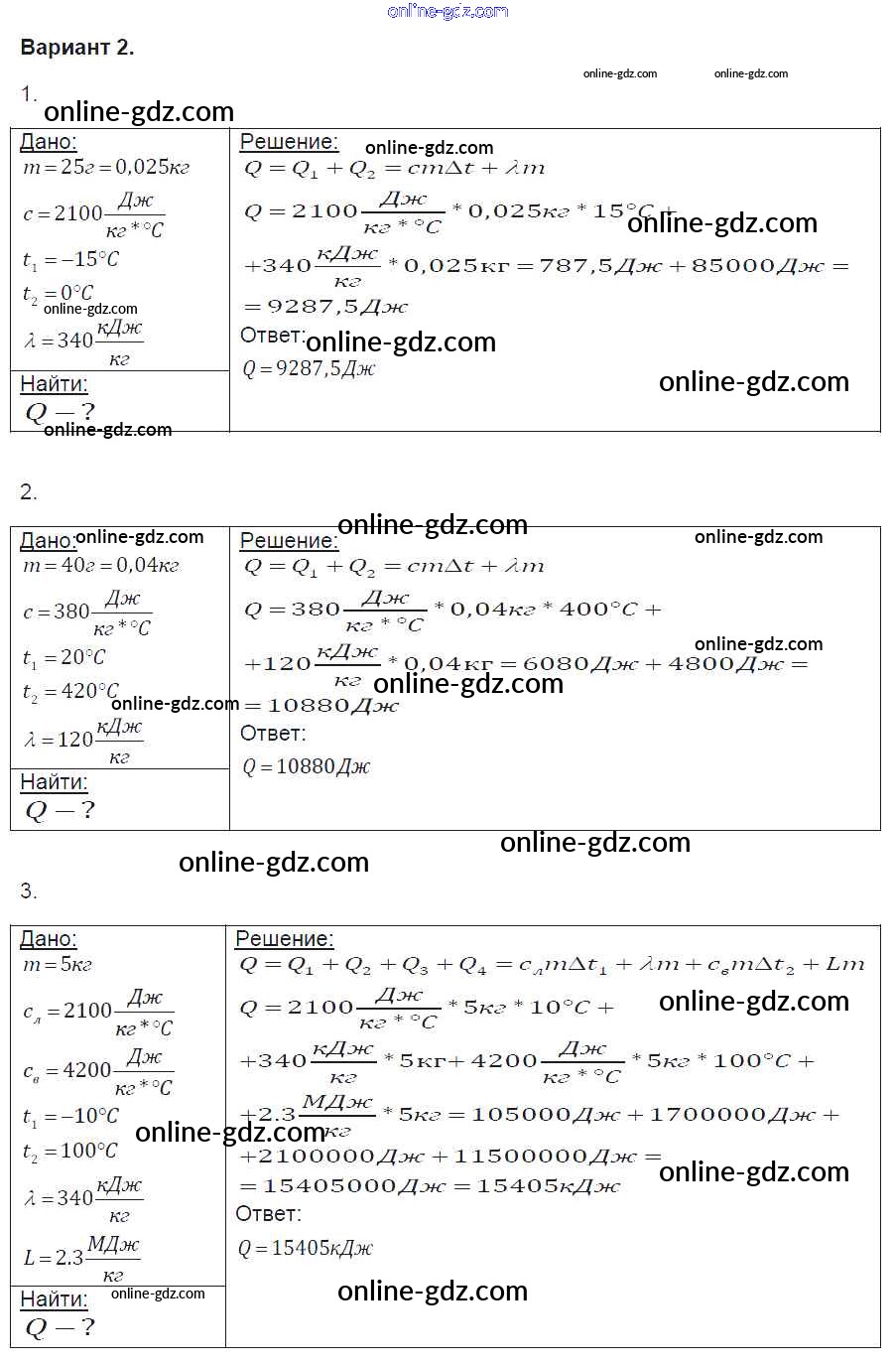 Готовые домашние задания по Физике за 8 класс Контрольные и самостоятельные работы Громцева УМК 2017 - СР №18. Тепловые процессы Самостоятельные работы вариант-2
