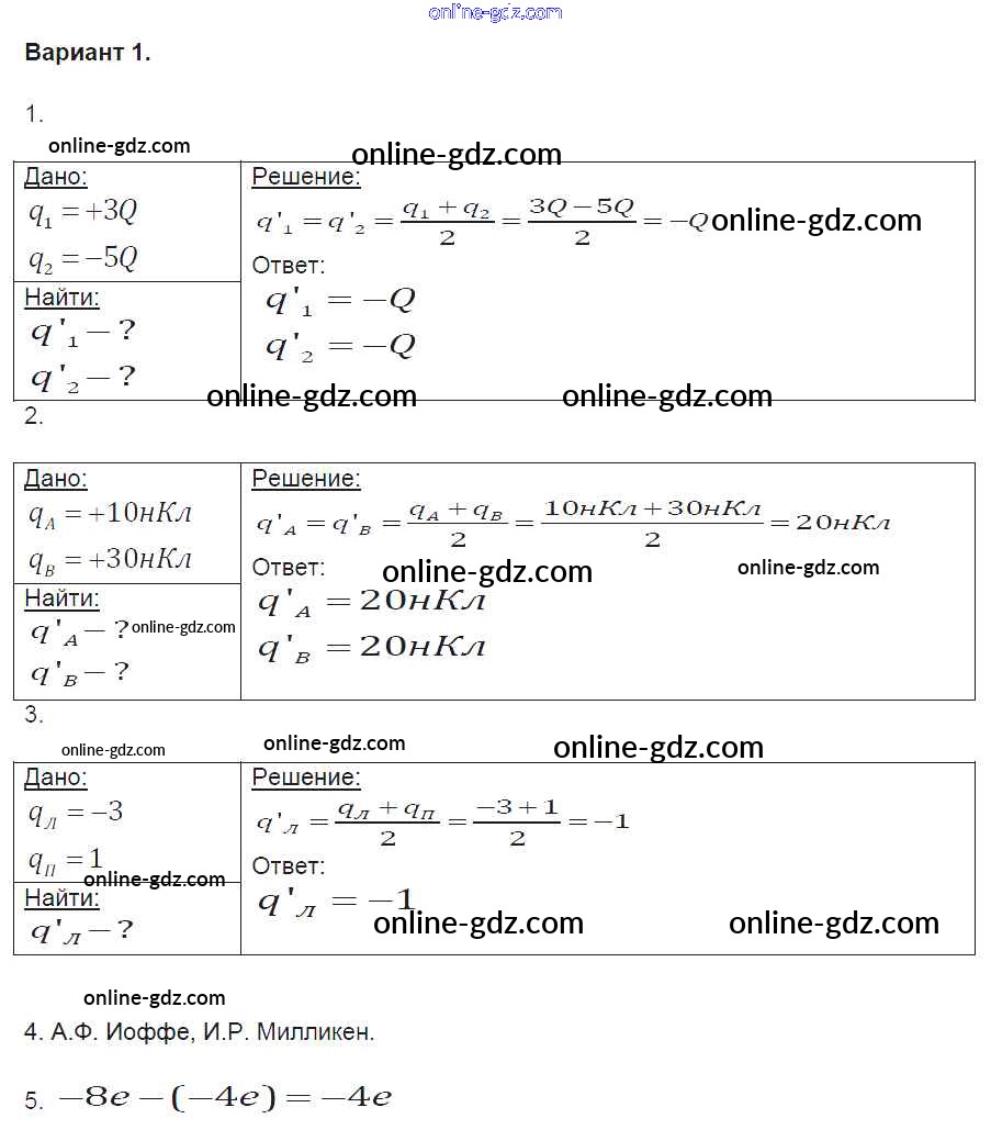 Готовые домашние задания по Физике за 8 класс Контрольные и самостоятельные работы Громцева УМК 2017 - СР №24. Делимость электрического заряда. Электрон Самостоятельные работы вариант-1