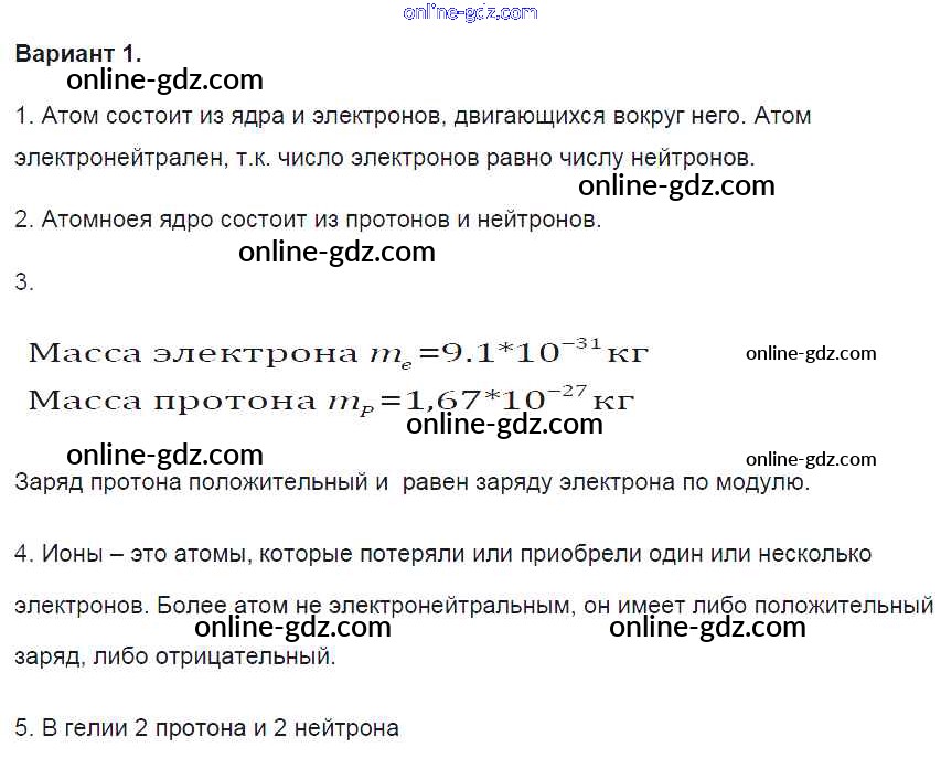 Готовые домашние задания по Физике за 8 класс Контрольные и самостоятельные работы Громцева УМК 2017 - СР №25. Строение атомов Самостоятельные работы вариант-1