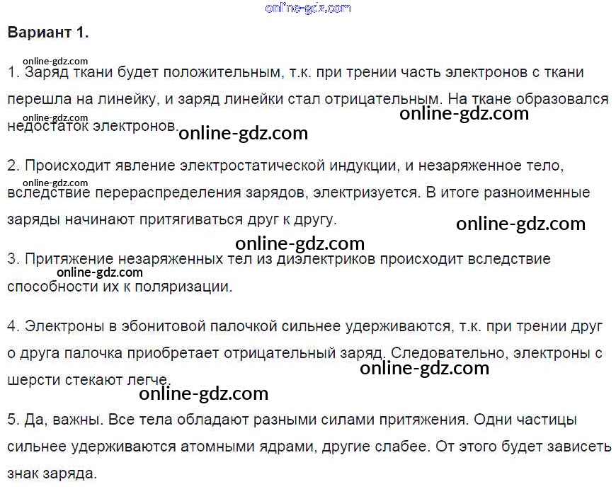 Готовые домашние задания по Физике за 8 класс Контрольные и самостоятельные работы Громцева УМК 2017 - СР №26. Объяснение электрических явлений Самостоятельные работы вариант-1