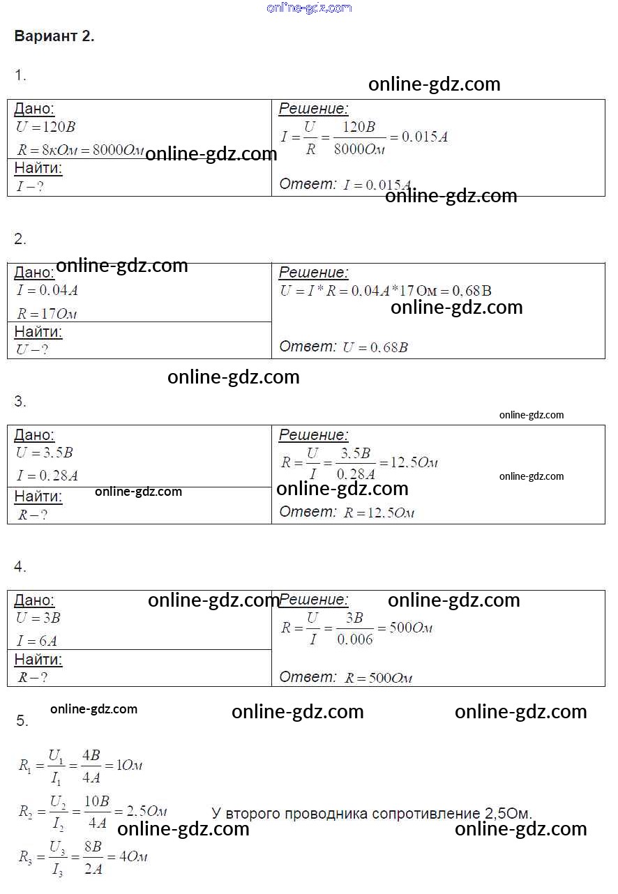 Готовые домашние задания по Физике за 8 класс Контрольные и самостоятельные работы Громцева УМК 2017 - СР №33. Закон Ома для участка цепи Самостоятельные работы вариант-2
