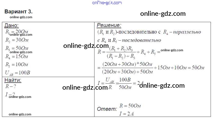 Готовые домашние задания по Физике за 8 класс Контрольные и самостоятельные работы Громцева УМК 2017 - СР №35. Последовательное и параллельное соединение проводников. Расчет полного сопротивления и силы тока в цепи Самостоятельные работы вариант-3