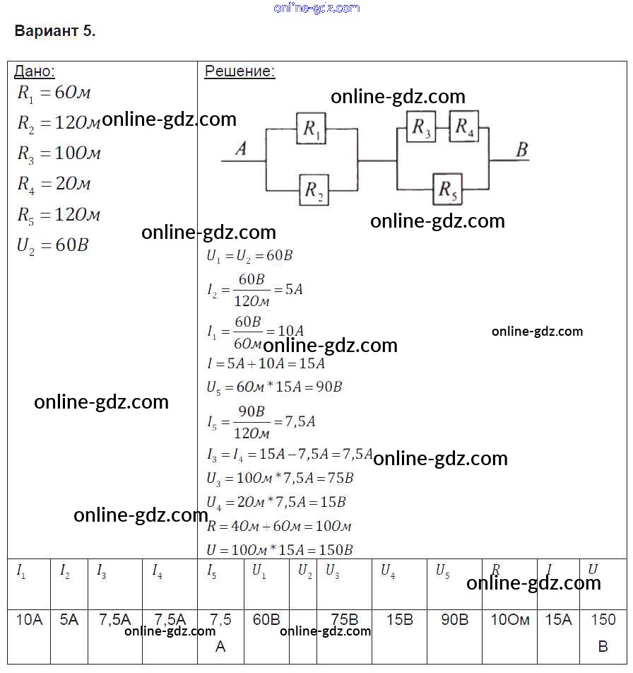 Готовые домашние задания по Физике за 8 класс Контрольные и самостоятельные работы Громцева УМК 2017 - СР №36. Расчет электрических цепей Самостоятельные работы вариант-5