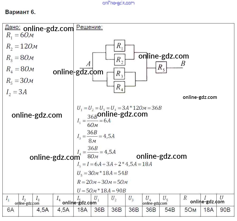 Готовые домашние задания по Физике за 8 класс Контрольные и самостоятельные работы Громцева УМК 2017 - СР №36. Расчет электрических цепей Самостоятельные работы вариант-6