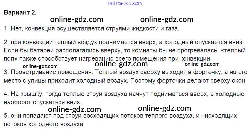 Готовые домашние задания по Физике за 8 класс Контрольные и самостоятельные работы Громцева УМК 2017 - СР №4. Конвекция Самостоятельные работы вариант-2
