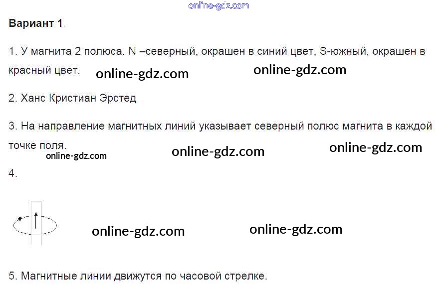 Готовые домашние задания по Физике за 8 класс Контрольные и самостоятельные работы Громцева УМК 2017 - СР №41. Магнитное поле. Магнитное поле прямого тока. Магнитные линии Самостоятельные работы вариант-1