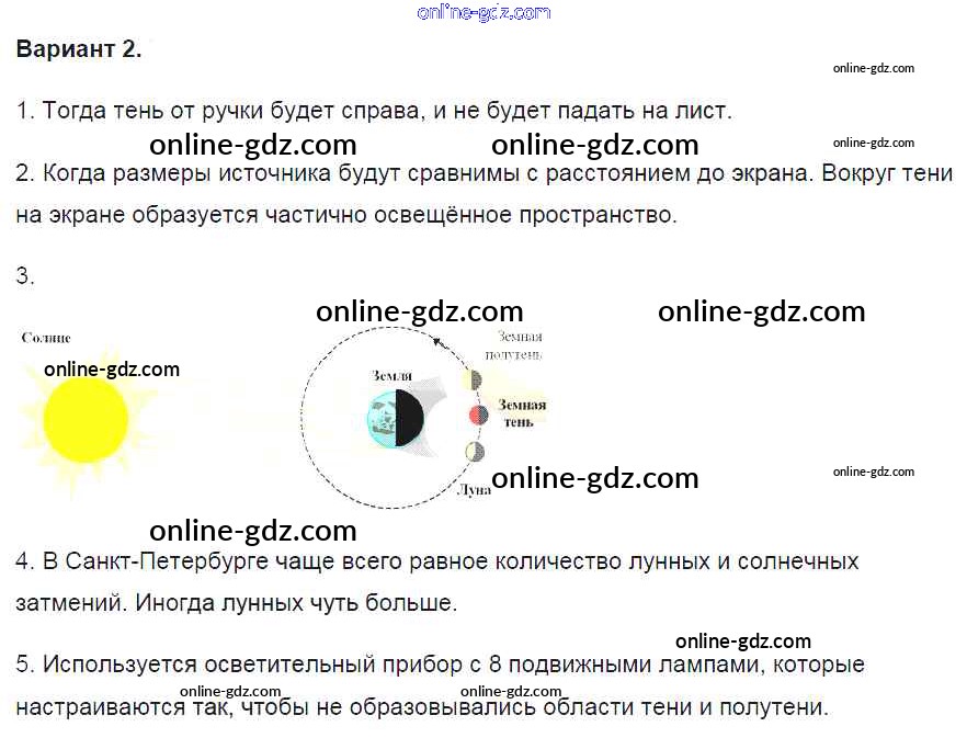 Готовые домашние задания по Физике за 8 класс Контрольные и самостоятельные работы Громцева УМК 2017 - СР №45. Распространение света Самостоятельные работы вариант-2
