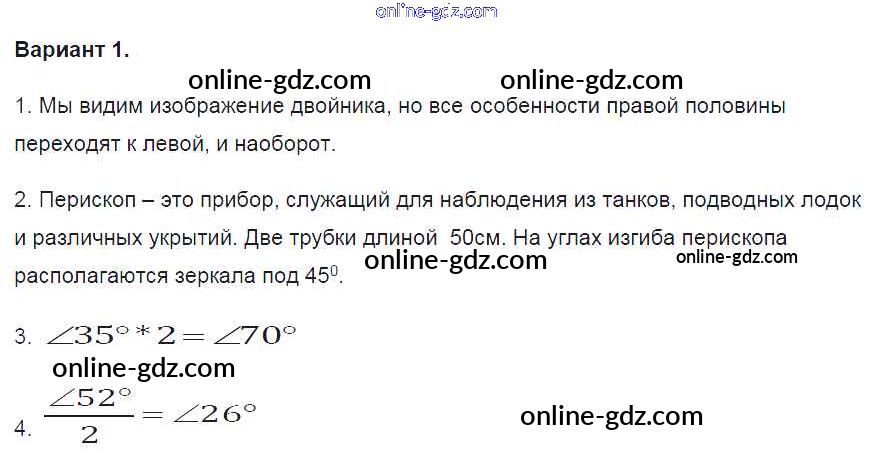 Готовые домашние задания по Физике за 8 класс Контрольные и самостоятельные работы Громцева УМК 2017 - СР №46. Отражение света. Законы отражения. Плоское зеркало Самостоятельные работы вариант-1