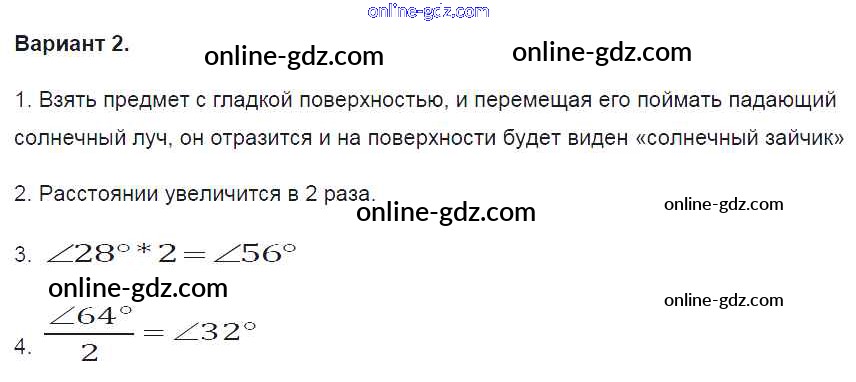 Готовые домашние задания по Физике за 8 класс Контрольные и самостоятельные работы Громцева УМК 2017 - СР №46. Отражение света. Законы отражения. Плоское зеркало Самостоятельные работы вариант-2