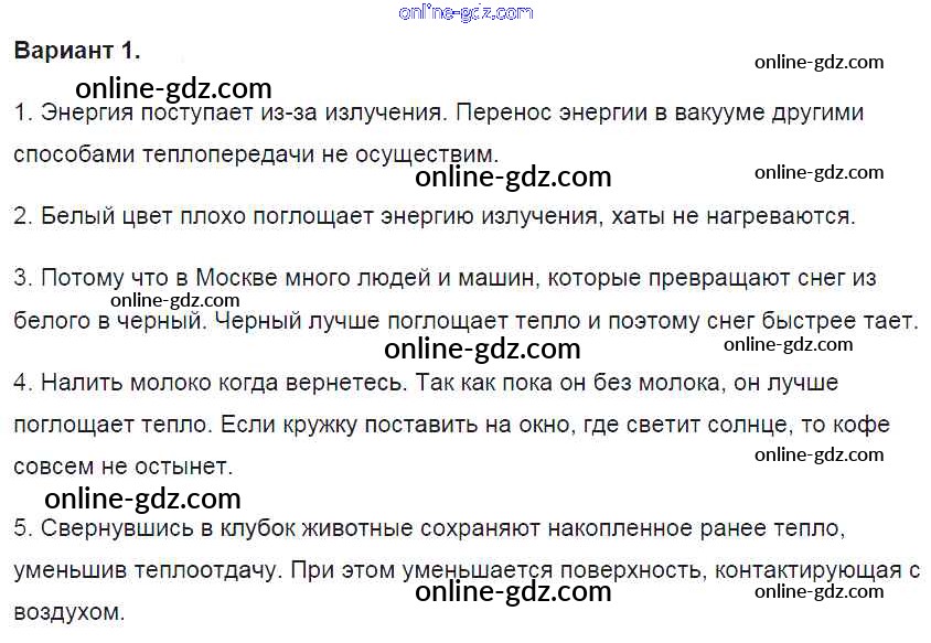 Готовые домашние задания по Физике за 8 класс Контрольные и самостоятельные работы Громцева УМК 2017 - СР №5. Излучение Самостоятельные работы вариант-1