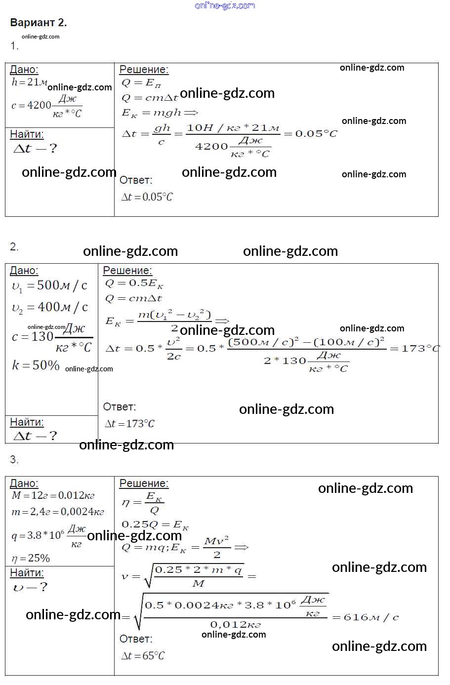 Готовые домашние задания по Физике за 8 класс Контрольные и самостоятельные работы Громцева УМК 2017 - СР №9. Закон сохранения и превращения энергии в механических и тепловых процессах Самостоятельные работы вариант-2