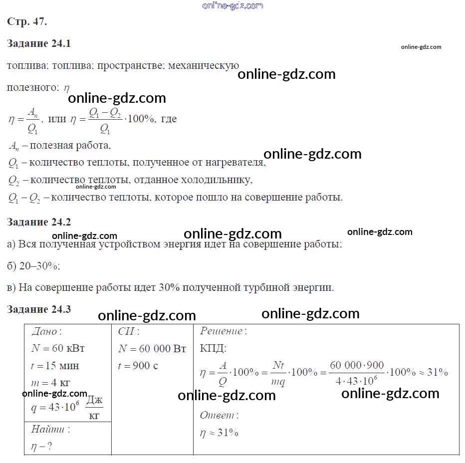 Готовые домашние задания по Физике за 8 класс Рабочая тетрадь Ханнанова Вертикаль 2017 - Страницы 47