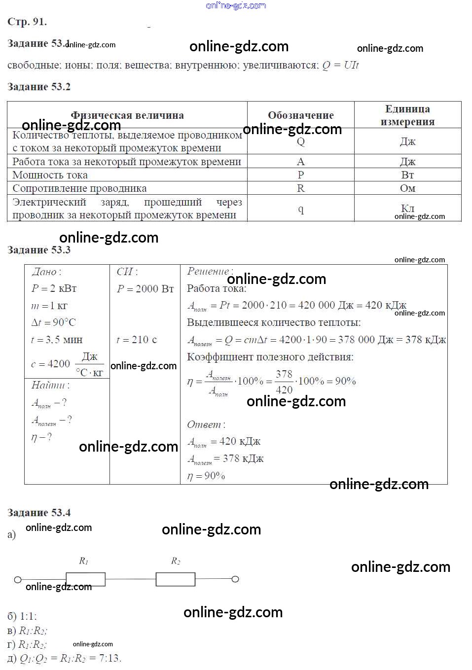 Готовые домашние задания по Физике за 8 класс Рабочая тетрадь Ханнанова Вертикаль 2017 - Страницы 91