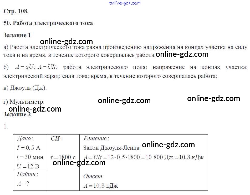 Готовые домашние задания по Физике за 8 класс Рабочая тетрадь Перышкин УМК 2017 - Страницы 108