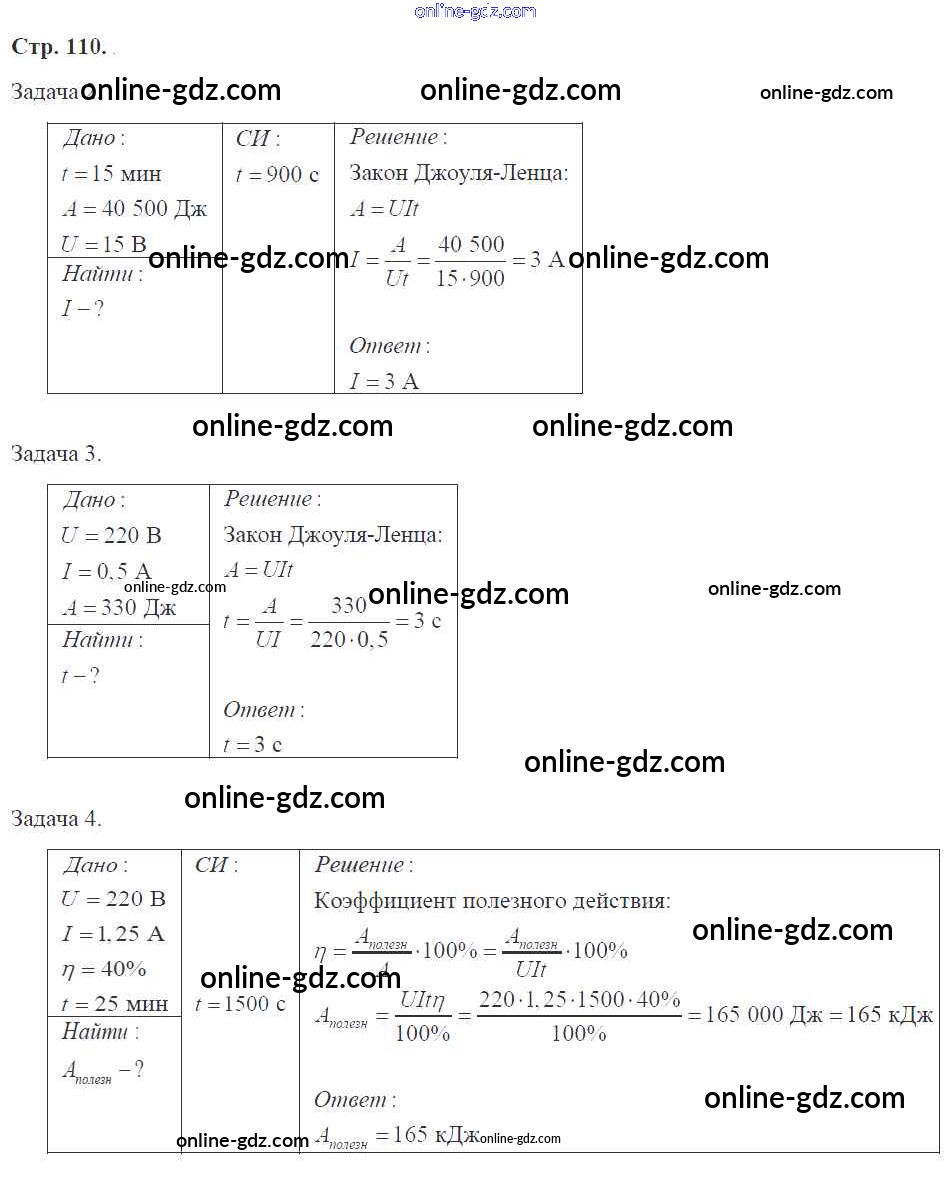 Готовые домашние задания по Физике за 8 класс Рабочая тетрадь Перышкин УМК 2017 - Страницы 110
