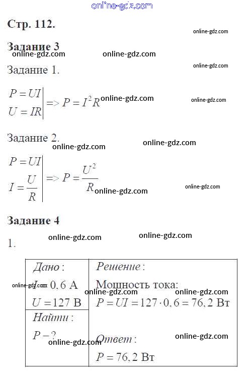 Готовые домашние задания по Физике за 8 класс Рабочая тетрадь Перышкин УМК 2017 - Страницы 112