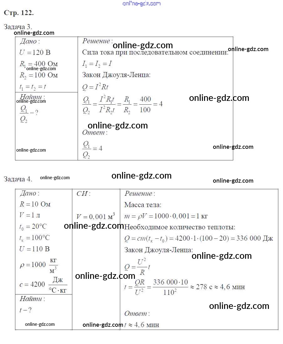 Готовые домашние задания по Физике за 8 класс Рабочая тетрадь Перышкин УМК 2017 - Страницы 122