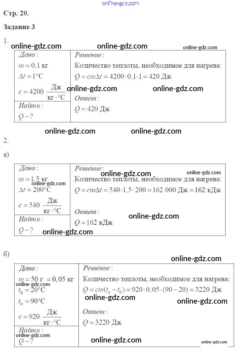 Готовые домашние задания по Физике за 8 класс Рабочая тетрадь Перышкин УМК 2017 - Страницы 20