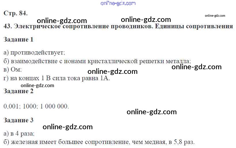 Готовые домашние задания по Физике за 8 класс Рабочая тетрадь Перышкин УМК 2017 - Страницы 84