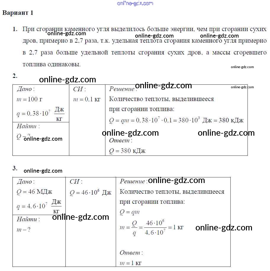 Готовые домашние задания по Физике за 8 класс Самостоятельные и контрольные работы Марон Вертикаль 2017 - СР-№10 Самостоятельные работы Вариант-1