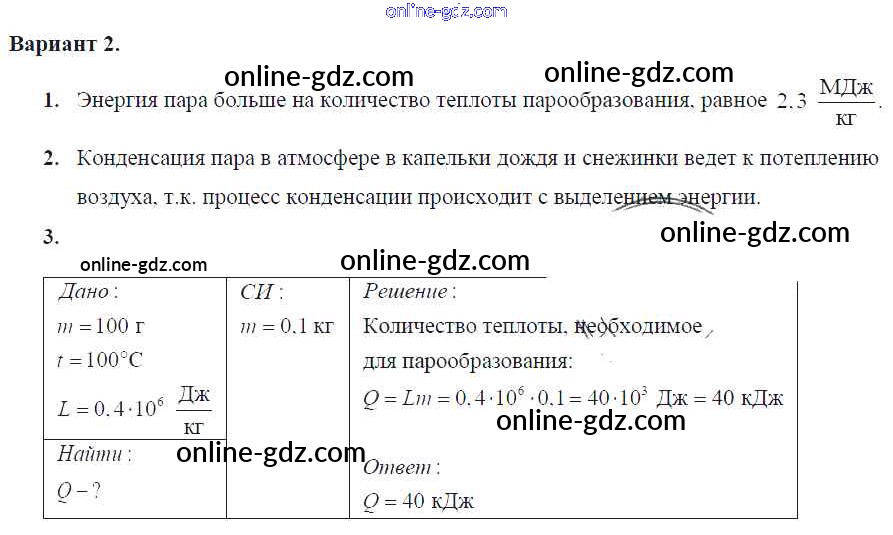 Готовые домашние задания по Физике за 8 класс Самостоятельные и контрольные работы Марон Вертикаль 2017 - СР-№20 Самостоятельные работы Вариант-2