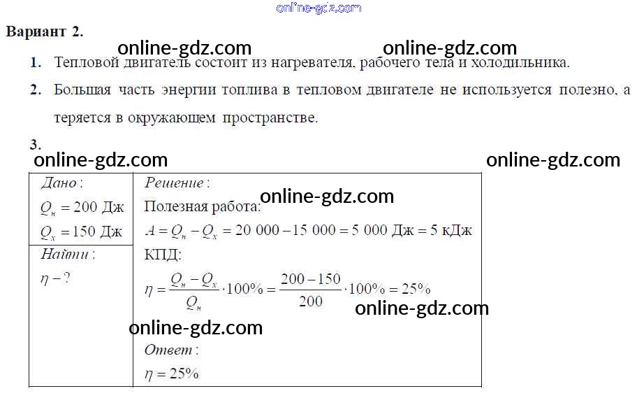 Готовые домашние задания по Физике за 8 класс Самостоятельные и контрольные работы Марон Вертикаль 2017 - СР-№24 Самостоятельные работы Вариант-2
