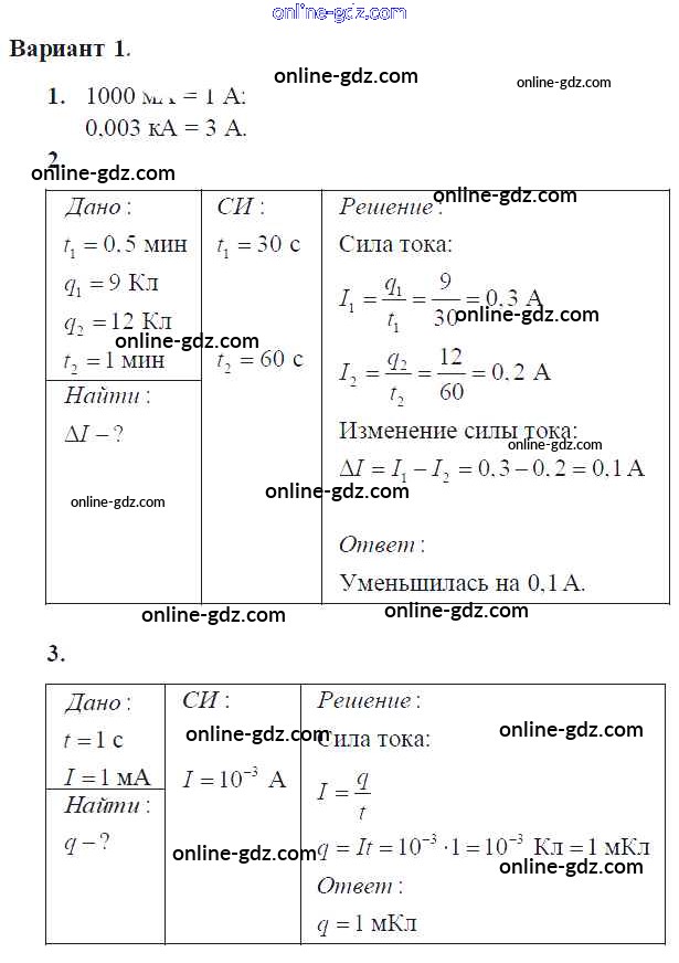 Готовые домашние задания по Физике за 8 класс Самостоятельные и контрольные работы Марон Вертикаль 2017 - СР-№37 Самостоятельные работы Вариант-1